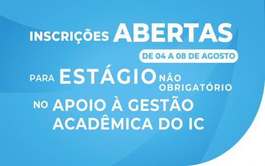 Confira o edital de seleção de estágio para atuar no IC/UFBA. São 2 vagas com disponibilidade imediata, para atuação no Centro de Apoio à Graduação e no Centro de Apoio à Pós-Graduação. Confira o resultado final (divulgado em 18/08/2025).